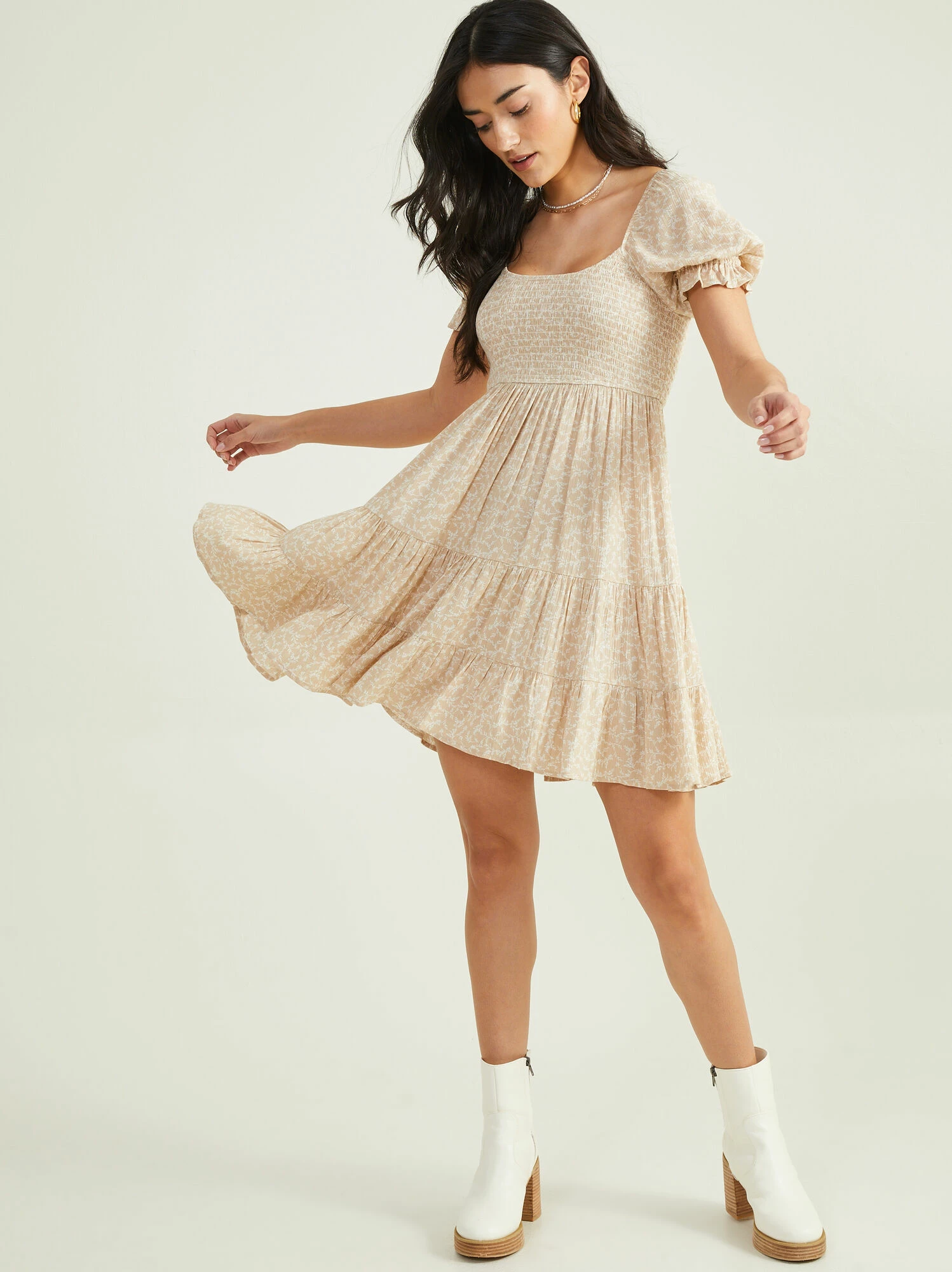 Consider the lazy days by adding this little smocked dress to your everyday closet. The laid-back vibe and comfortable fit make this the perfect dress to throw on when you don’t feel like getting ready. You will always look put together because the tiered ruffled skirt and puff sleeves add a sweet touch so that you can wear this just about anywhere.