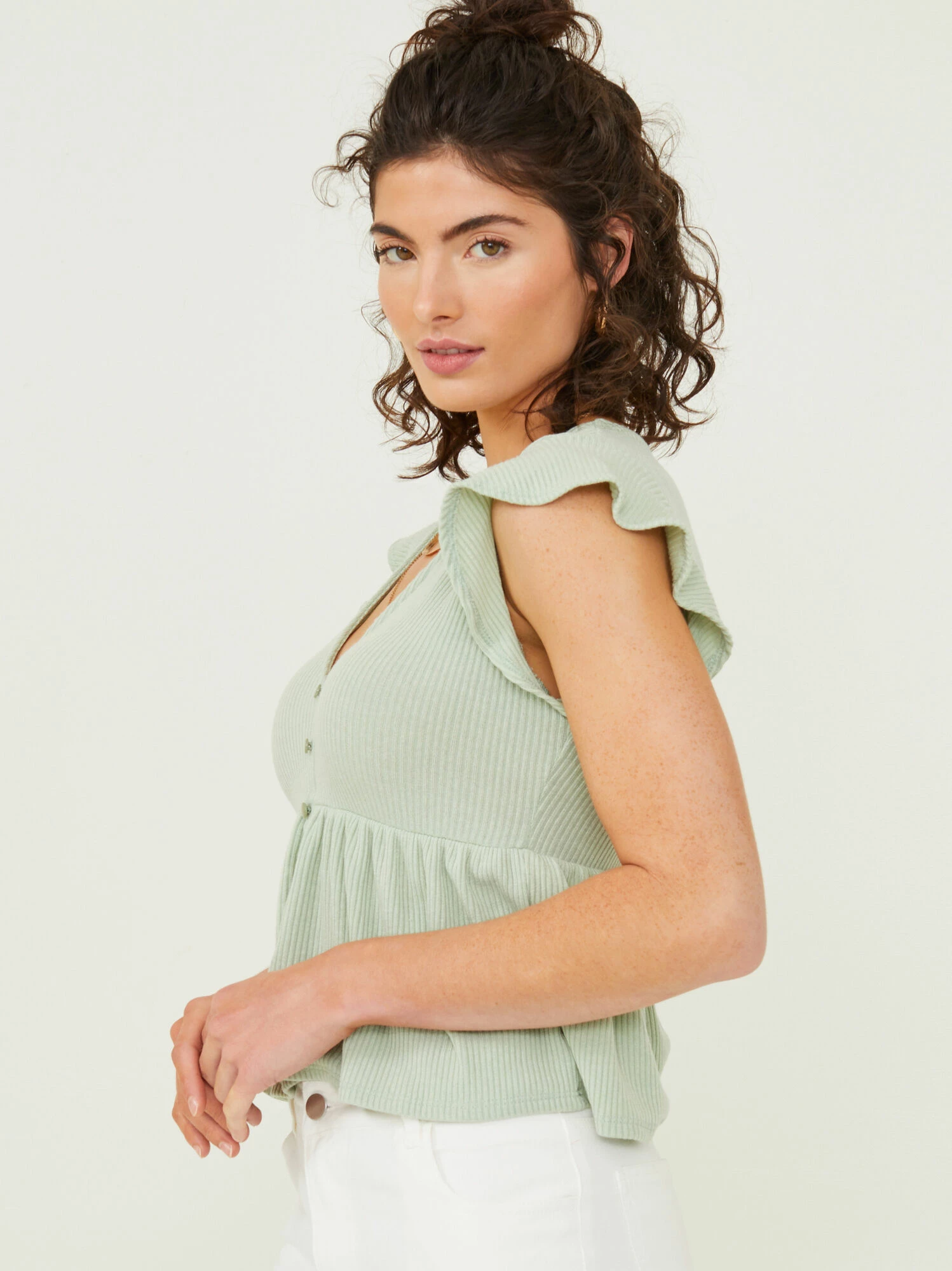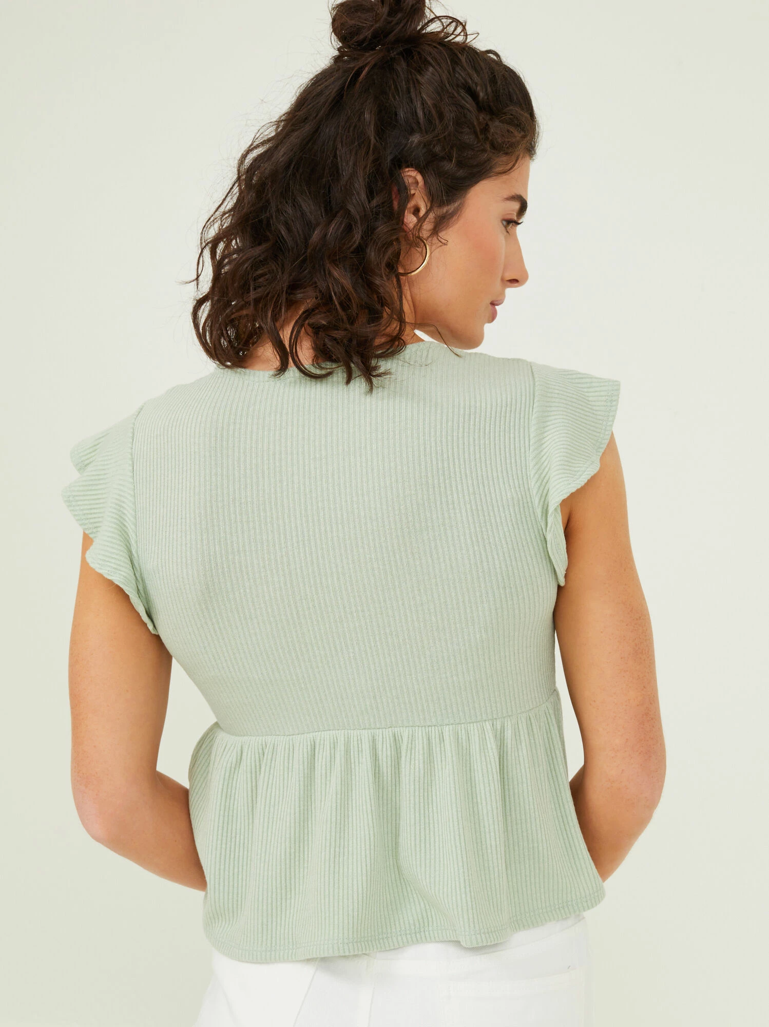 The Aubrey top is a babydoll style blouse that will quickly become your new go-to. The soft and stretchy material allows for all day comfort, while the flutter sleeves add feminine charm to this classic style. The v-neck allows for a deep plunge that shows some skin but is still modest enough for everyday wear. Pair this essential top with your favorite denim bottoms and your ready for the day!