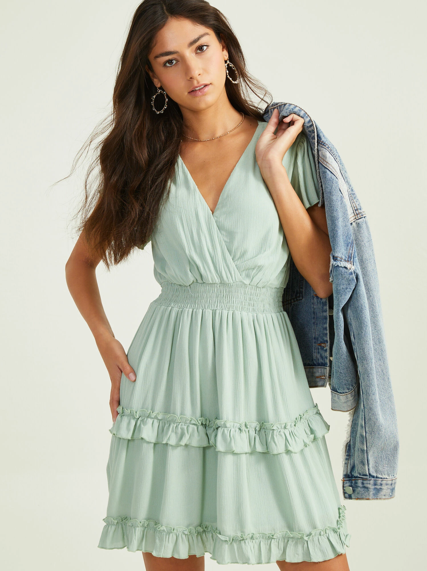 The perfect casual dress to add to your closet collection. This little dress will bring a flirty and sweet vibe, perfect for date night or brunch with the girls! The sweet-tiered ruffles, v-neckline, and flutter sleeves, pulled together with a comfortable smocked waistline, will keep you comfy and confident no matter where you wear it.