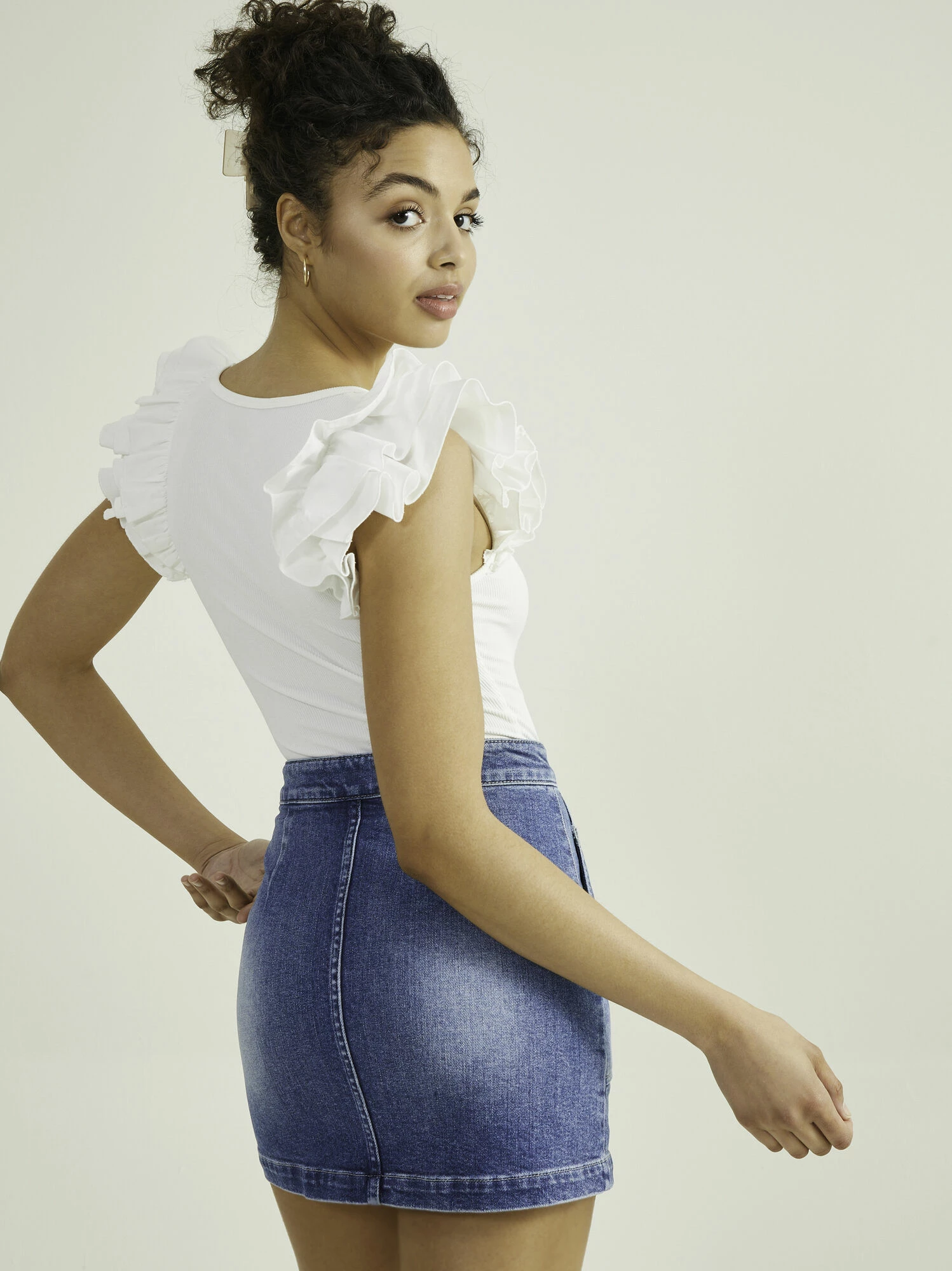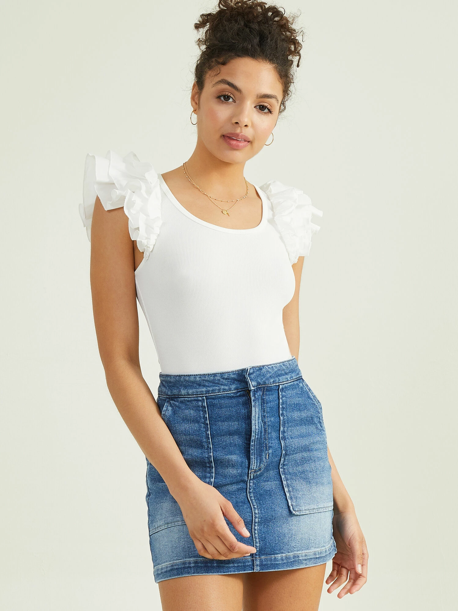 The Bonnie Ruffle Sleeve Bodysuit will make a timeless addition to your closet. This super soft ribbed bodysuit features three layers of ruffle sleeves. The bodysuit has a great stretch for added comfort. Style this with jeans, shorts, or a skirt- the styling possibilities are endless!