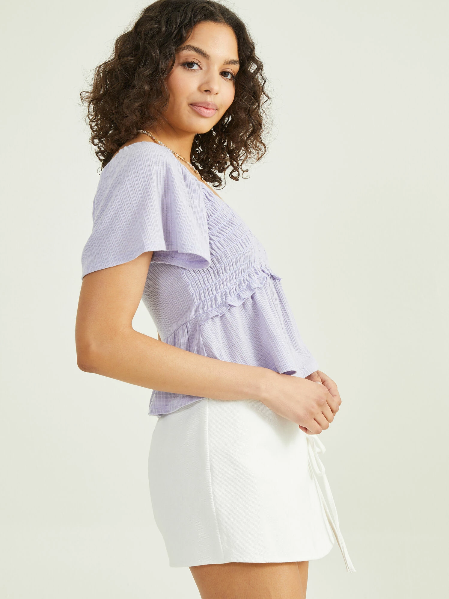 The Bridgette Babydoll Top is the perfect top to add to your wardrobe. This top is so versatile, and can be dressed up or down depending on your plans. We love the v-neck cut of this top for a flirty vibe, and the smocked detailing makes this sure oh-so-comfortable. Pair with the Gillian Straight Jeans and a cute claw clip for an effortlessly put together look!