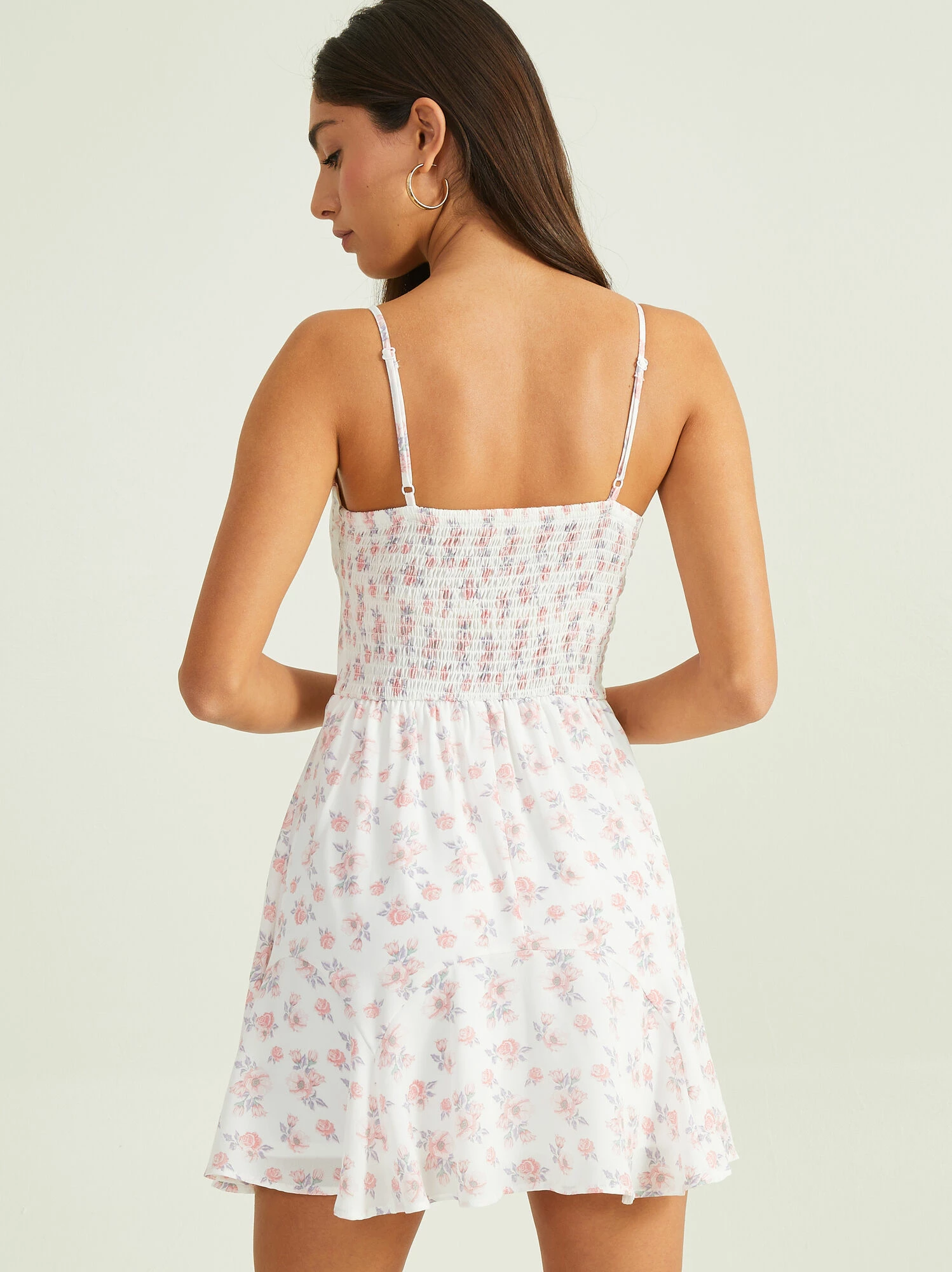 This Springtime mini dress will be the perfect addition to your closet collection! The ultra-flattering fit, built-in cups, smocked back, and flowy skirt makes for the flirtiest dress, perfect for your next occasion. Your unique style will highlight the dress perfectly by pairing it with your favorite heels and jewelry!