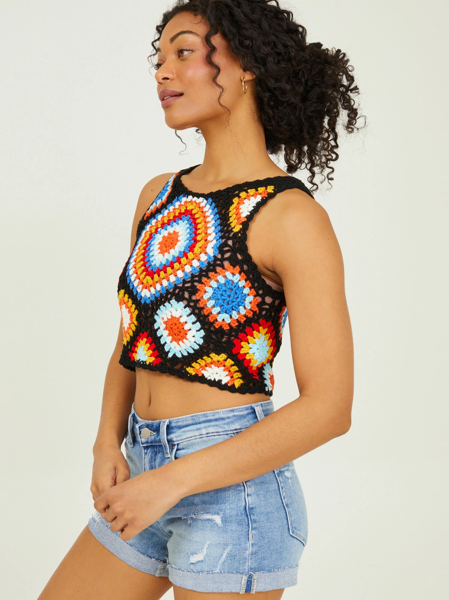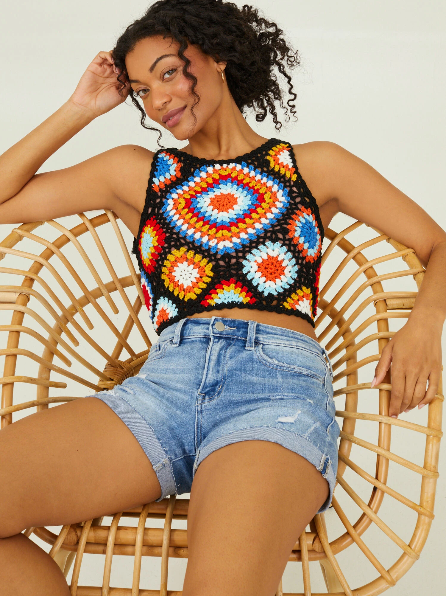 Crochet is back! We love the fun pattern of this tank and it makes such a great layering piece. This super soft tank will be your go-to to throw over a swimsuit or style it with jean shorts and sandals for a complete outfit.