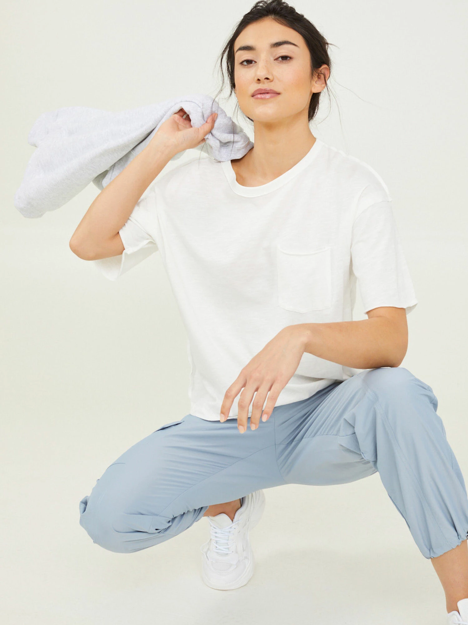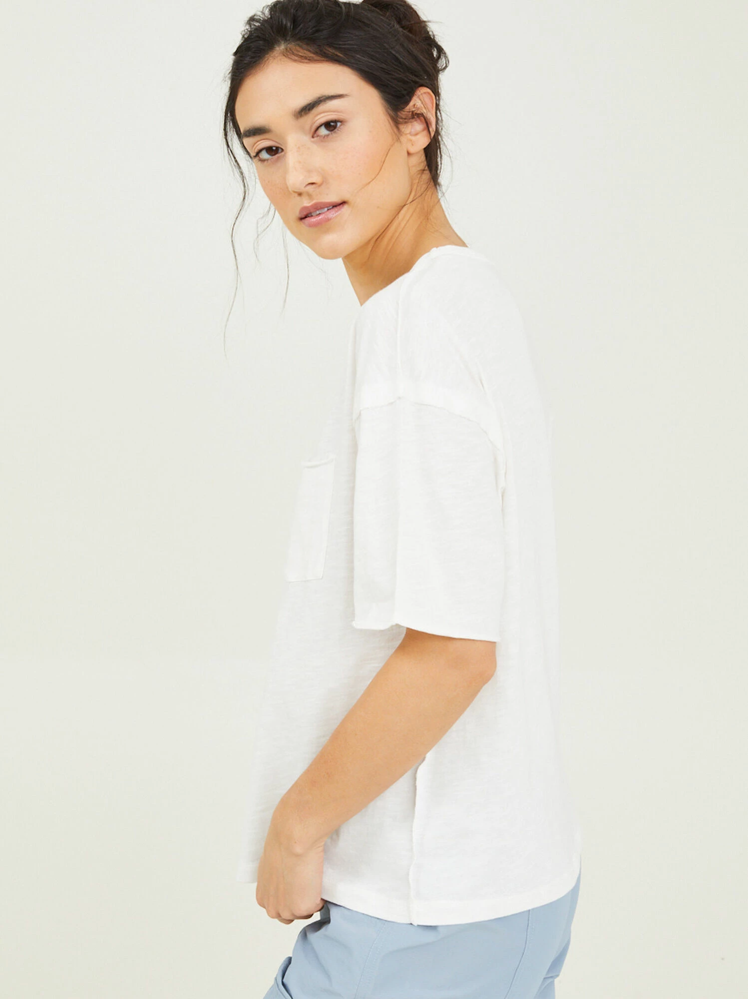 Meet your new all seasons staple top that effortlessly pairs with all your athleisure looks. The loose, oversized fit and side pocket give a relaxed style you will love under your favorite zip up hoodie or over a matching workout set!
