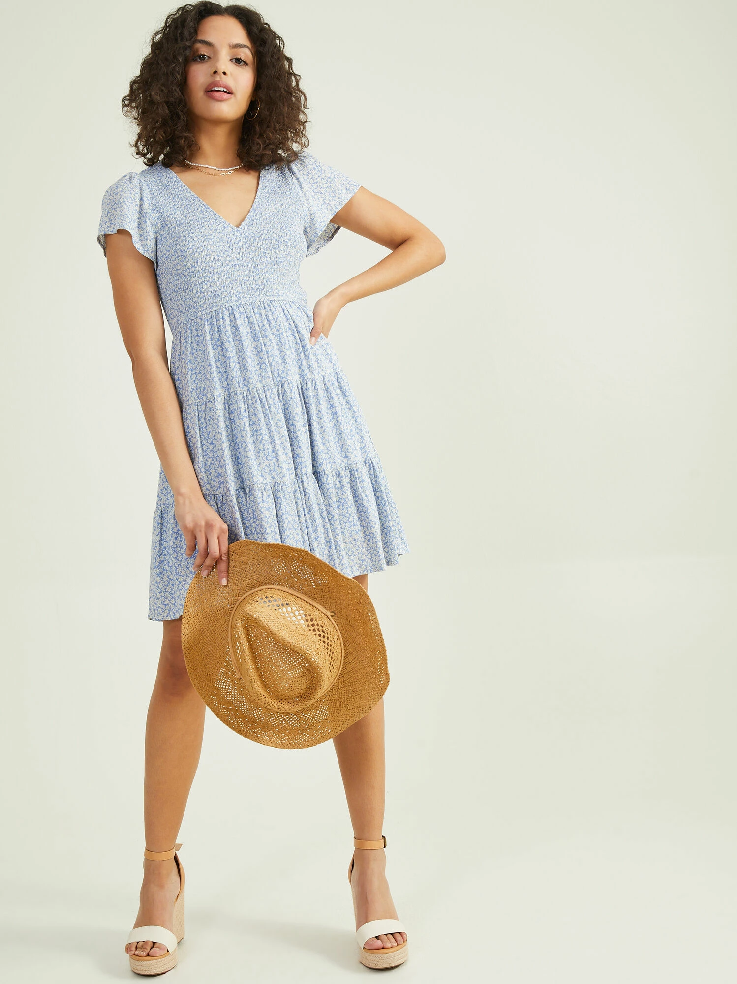 The Emery Floral Smocked Dress is a classic sundress, it will be your new go-to! This lightweight dress is so soft and breathable. The flutter sleeves, tiered skirt, and smocked top gives it such a flattering look. Whether for a trip to the beach or hitting your local farmers market, pair this with some sandals for an effortless look.