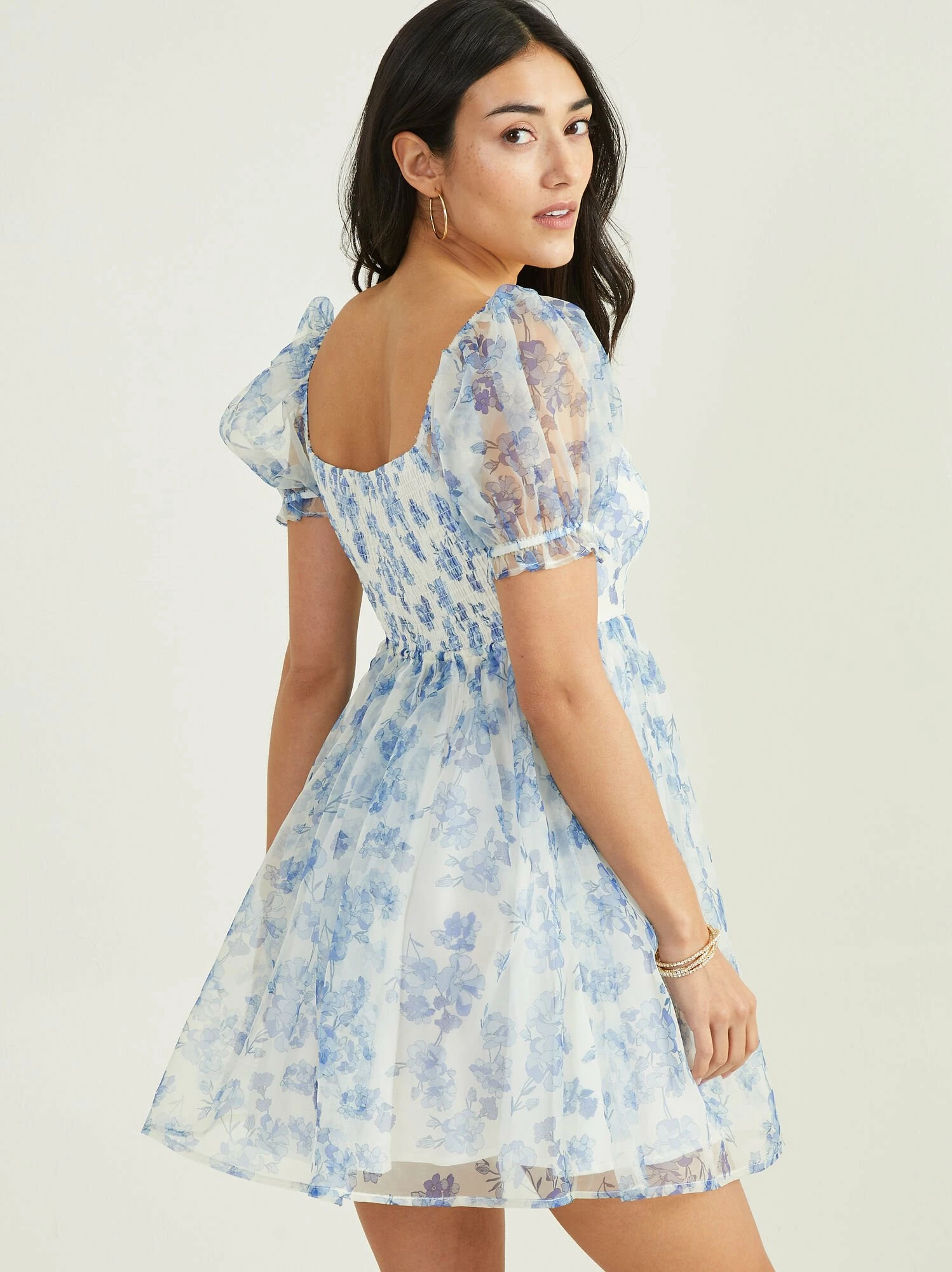 Live out your fairytale dreams in this charming puff-sleeve dress! The organza material and enchanting floral design transform this babydoll dress into a dream. The perfect addition to your closet to romanticize your outfits. Pair this little smocked dress with dainty heels and your favorite jewelry to add comfort and style to your real-life fantasy!