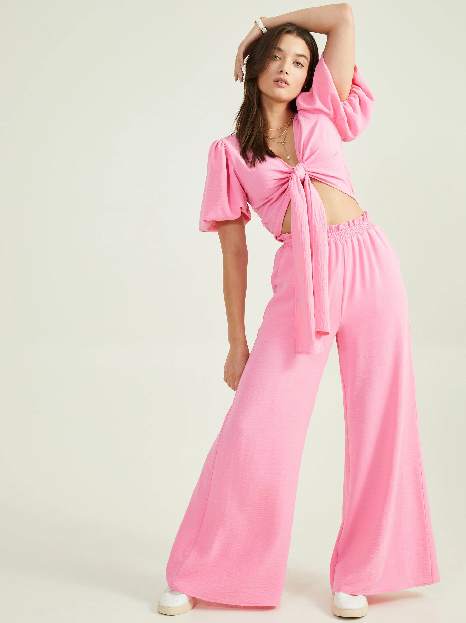 This is the perfect top to elevate your outfit to the next level! We are obsessed with tie front everything, especially this top. The short puff sleeves add a fun trend to this shirt, and the tie front is the perfect eye-catching look to spice up your look. Pair this with the matching Gemma Smocked Pants Set and some sandals for the perfect, effortless beachy look.