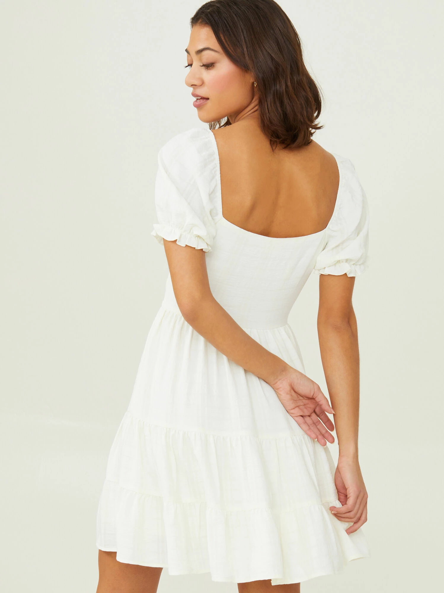 The Jenny Dress is a perfectly simple, yet sweet dress! The ruffles throughout the bottom and puff sleeves add some feminine flair to this classic dress. With a V-neckline, this dress pairs great with a layered necklace look and would be perfect for your next brunch date!