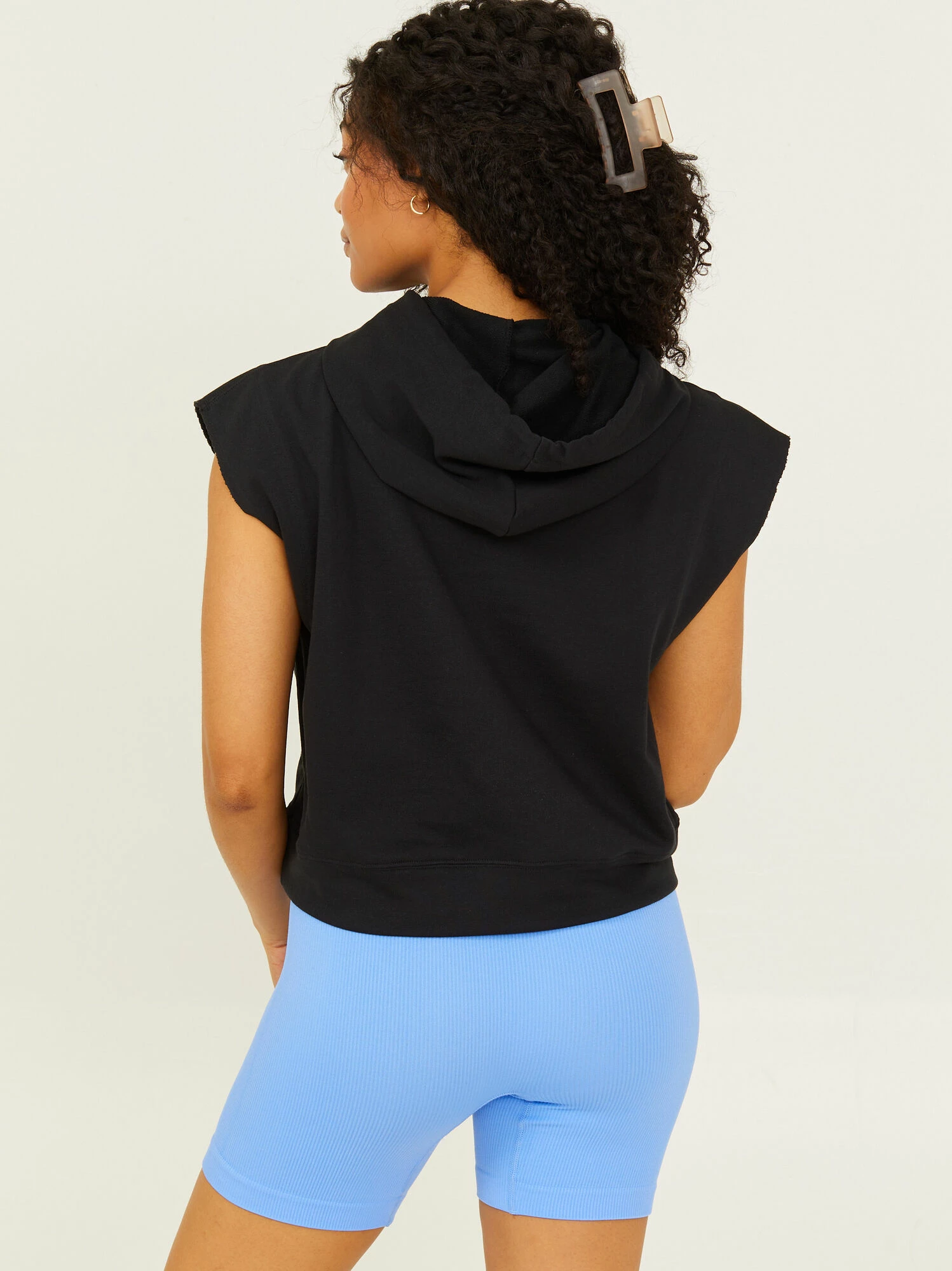 Add an easy layer to your running outfit or pair with cargo joggers and a baseball hat for an effortlessly cool outing look. This cozy sweatshirt hoodie has a loose fit and features a sleeveless drop shoulder style with a thick banded hem.