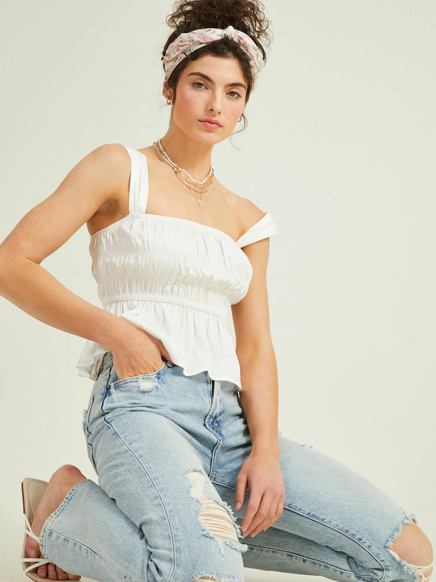 Add this little top to your closet collection to highlight your unique feminine style! The smocked babydoll design will accentuate your waist and add dimension to your looks. This trendy top will be a go-to because of its versatility; dress it up or down, and you can’t go wrong with this staple piece.