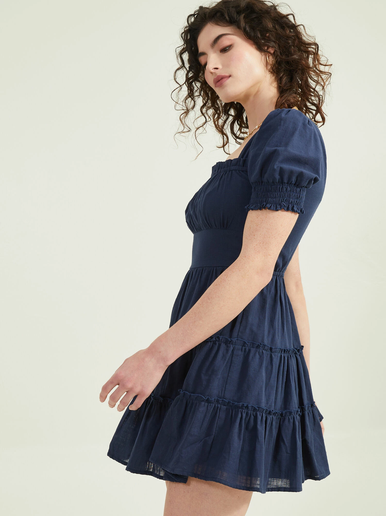 The Kendall dress is a must have for the season! This dress has an adorable feminine look featuring puff sleeves, tiered ruffles, and an embroidered waist. The smocked detailing on the back gives this dress such a flattering fit for everyone! Pair this dress with some tall boots for a cute daytime look!