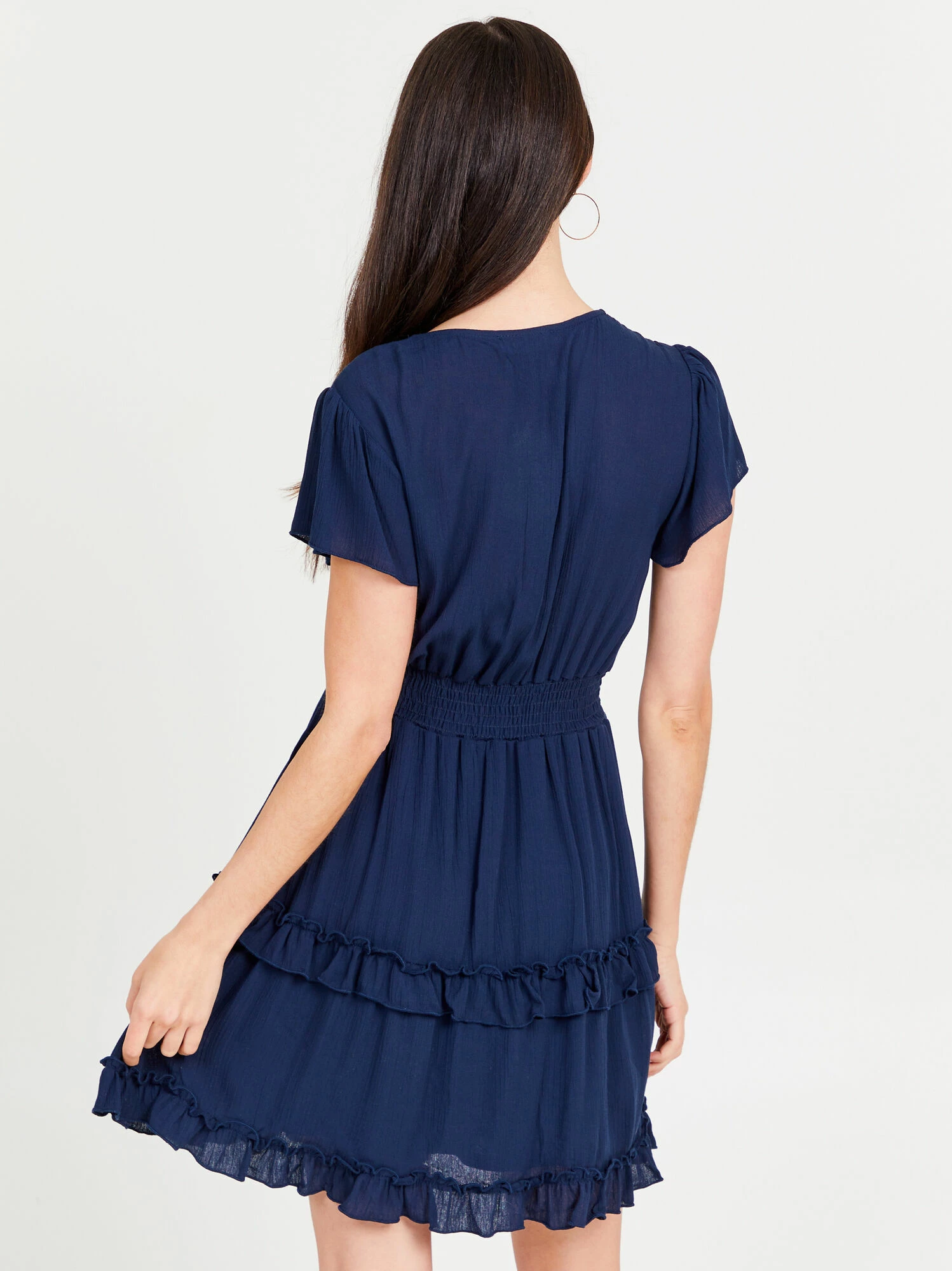 THIS SIMPLE AND ELEGANT DRESS IS PERFECT TO WEAR FOR ANY OCCASION! WITH AN ELASTIC STRETCH WAIST, THIS DRESS IS SO COMFORTABLE AND FLATTERING. PAIR THIS WITH YOUR FAVORITE SANDALS OR WEDGES TO COMPLETE YOUR LOOK!