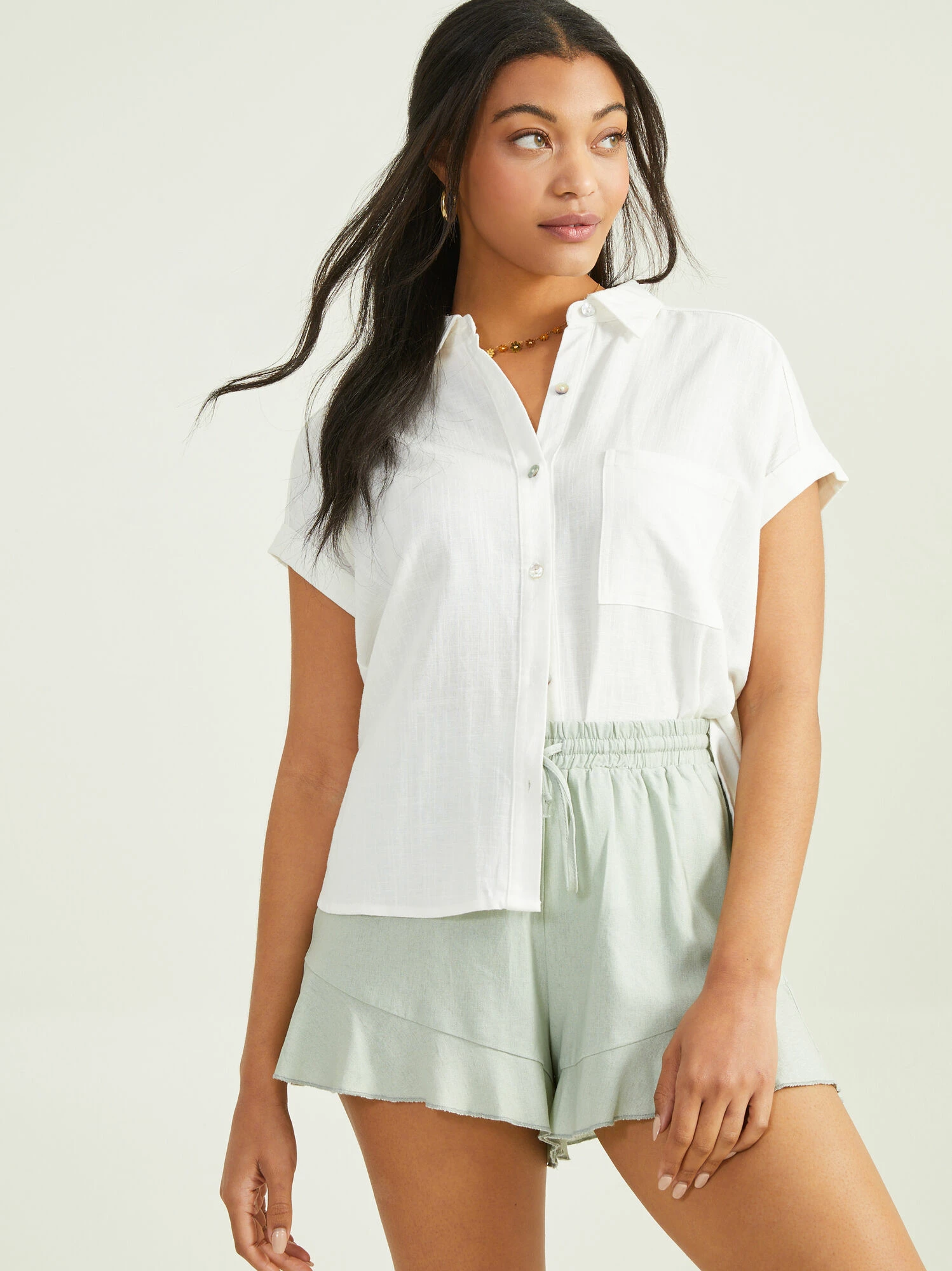 The Meg Linen Shorts are the perfect addition to your warm-weather closet. The flouncy ruffled hem and lightweight linen material pulled together with the comfortable drawstring make for the most flattering fit. These feminine shorts will be your new go-to for any occasion!