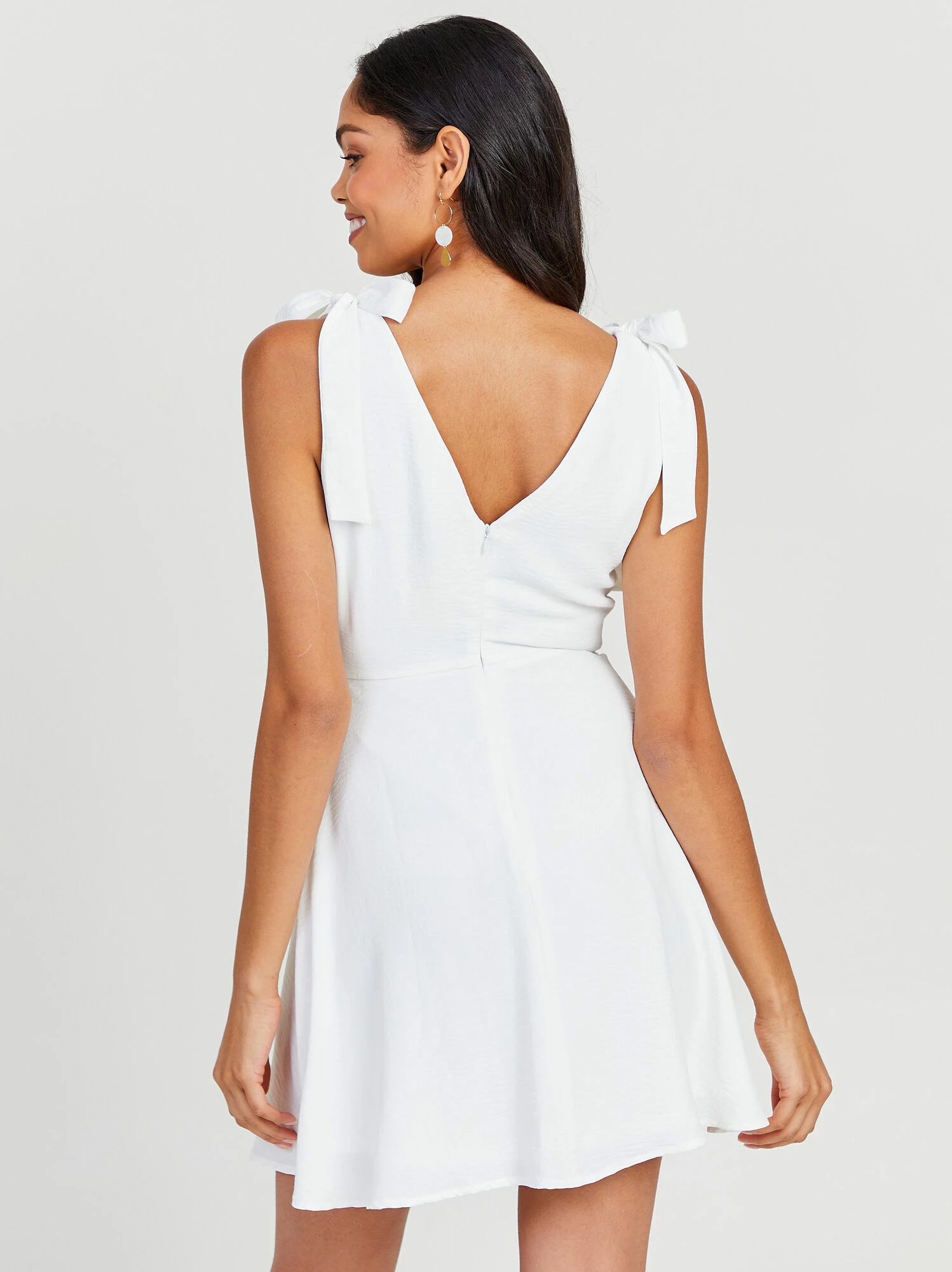 - TIE SHOULDER, FITTED BODICE, DEEP V-NECK AND BACK