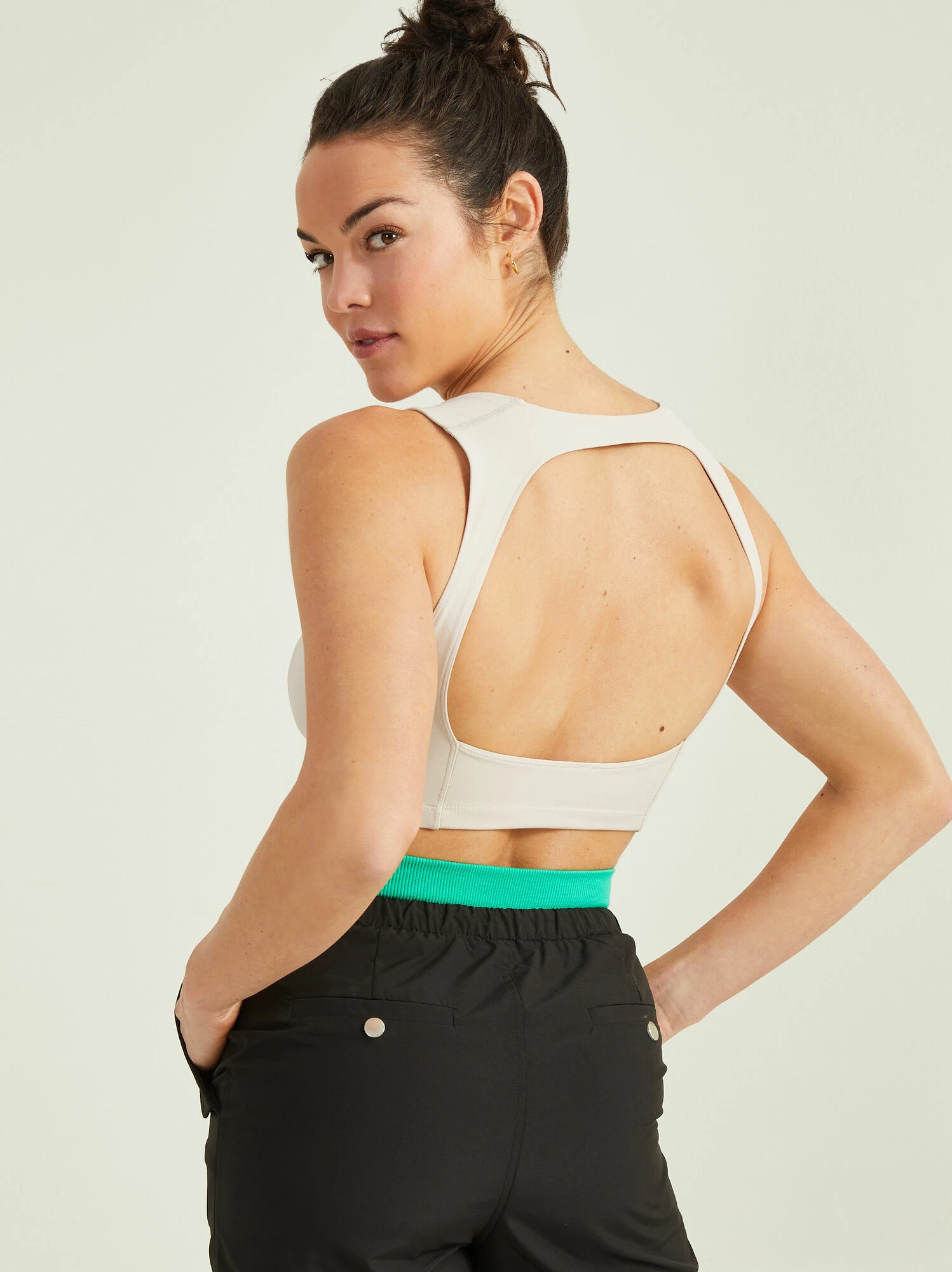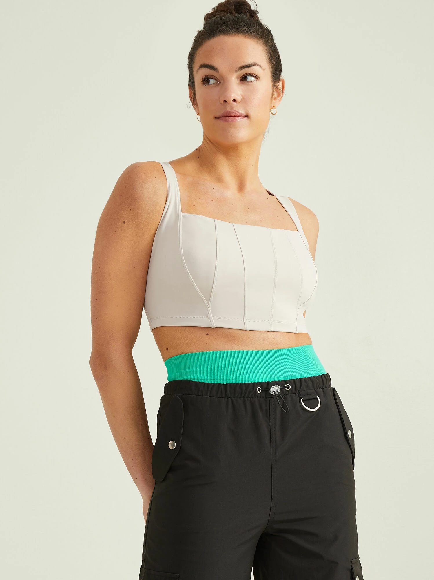 This bustier inspired cropped tank gives a classy look featuring a high cut out back and front lined seams with a slimming fit. Pair with cargos over biker shorts for a cool everyday outing look!