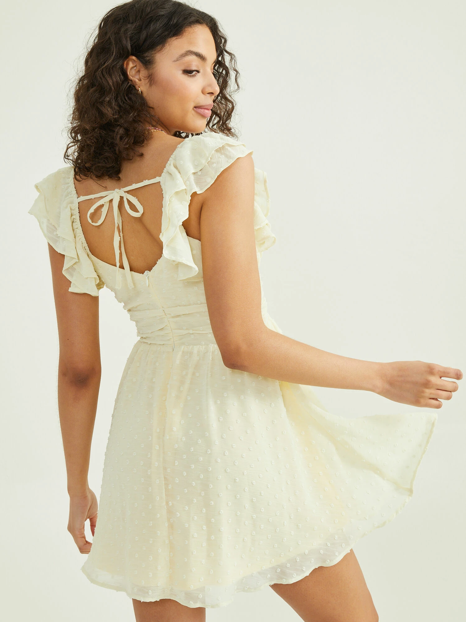 The Sylvia dress is perfect for any dressed up occasion, it will be your next closet staple! The V-neckline and thick waist band give this dress such a flattering fit. This dress features a clip dot texture throughout and flutter sleeves for the perfect feminine touch. This dress will keep you feeling classy and confident no matter where you wear it!