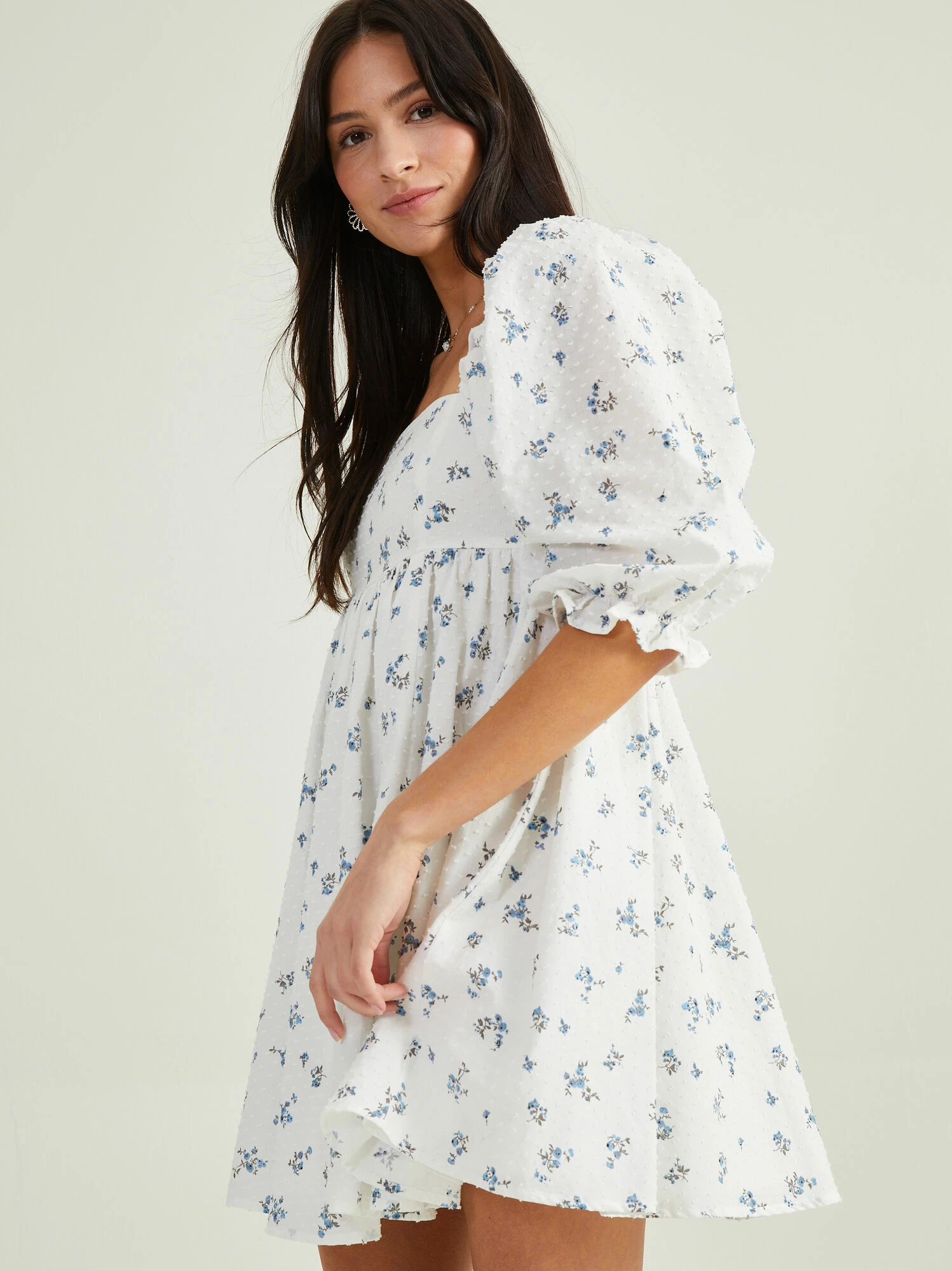 This puff-sleeve beauty is the perfect dress for Spring. With a flowy, babydoll shape, this floral clip dot dress will flatter every body type and is perfect for your next Sunday brunch! Pair with your favorite heels for a flirty and fun look!